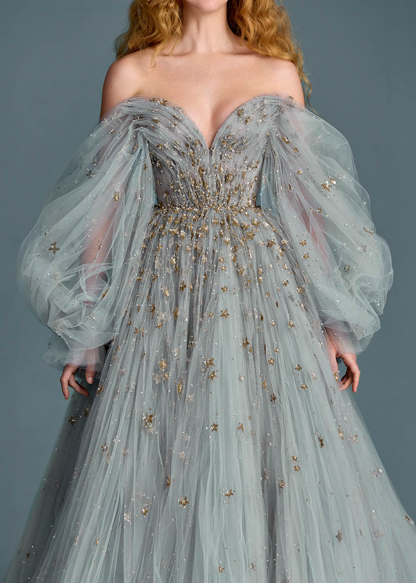 Previous PostNext Post A Lover’s Kiss LOOK – PSAW2502 Pleated ball gown with star embroidery and fountain twist bishop sleeves, inspired by Romeo and Juliet’s forbidden fate. Make an Enquiryback to gallery