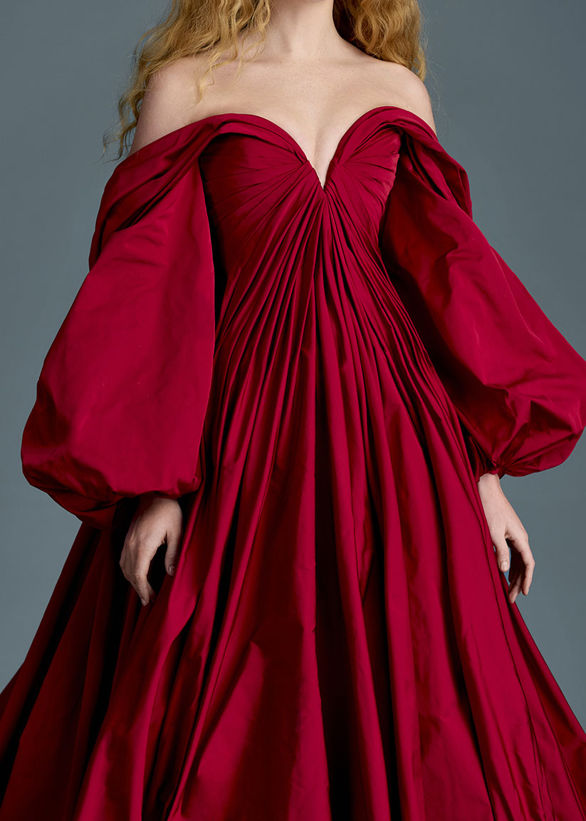Previous PostNext Post A Lover’s Kiss LOOK – PSAW2507 Draped mikado gown with cape and waterfall bishop sleeves, honouring Psyche’s resolve to reunite with Cupid. Make an Enquiryback to gallery