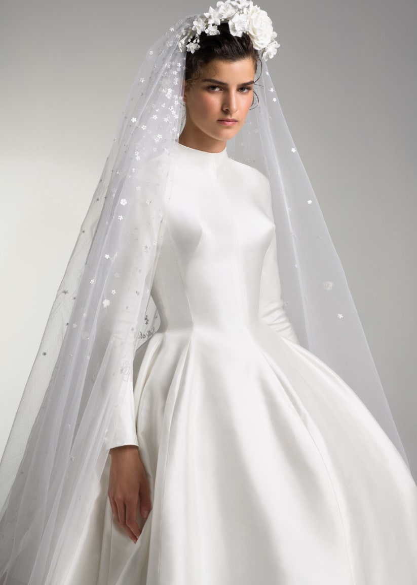 Previous Post ALLORA DOMENICA… LOOK – PSSS2416 Silk mikado bell-shaped ball gown with 3D floral veil, influenced by the traditional bridal gowns of 1950s Italia. Make an Enquiryback to gallery