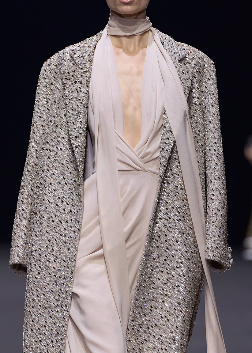 Previous PostNext Post POLVERE DI STELLE LOOK – PSSS2507 Fully embellished cashmere coat with draped georgette gown. Make an Enquiryback to gallery
